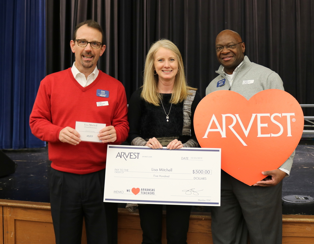 Nominations were accepted through the Arvest Facebook page October 7 - 13. All prizes will go to teachers who work at state-funded schools. Thank you to Arvest Bank for recognizing Mrs. Mitchell's hard work and the hard work of all educators in Arkansas.