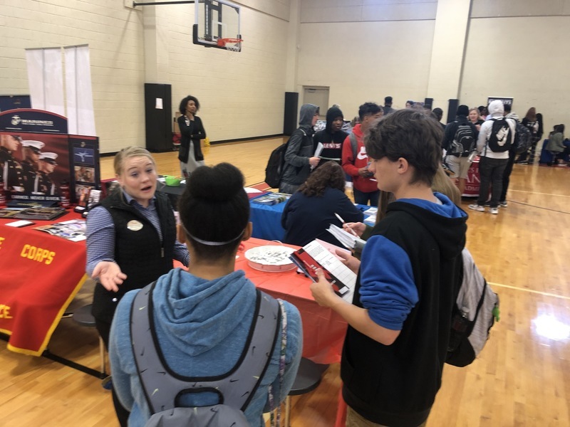 The students were challenged to visit at least 3 schools and 3 careers during the fair. Each student was given a list of questions to the representatives to ensure the student had received everything they should know.
