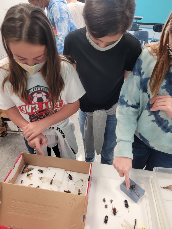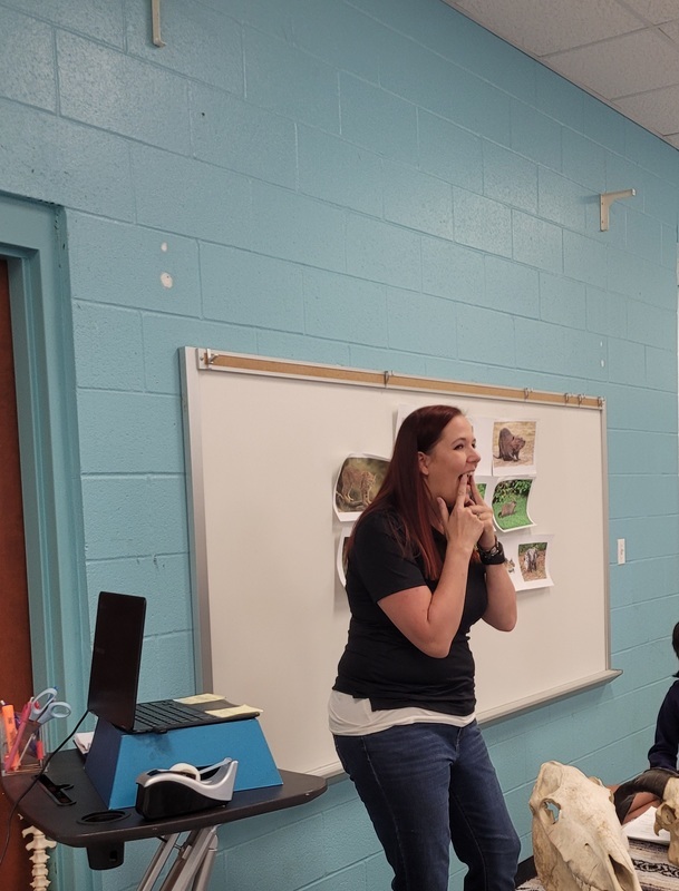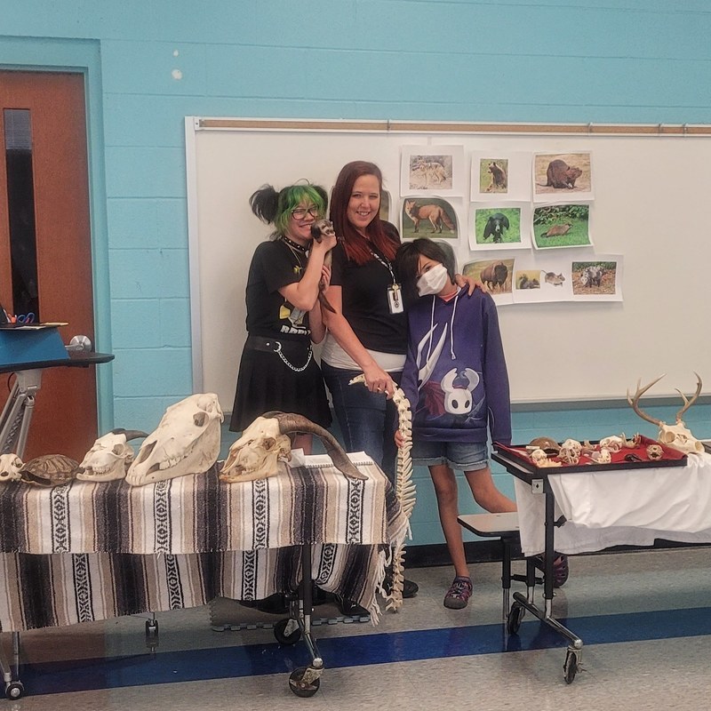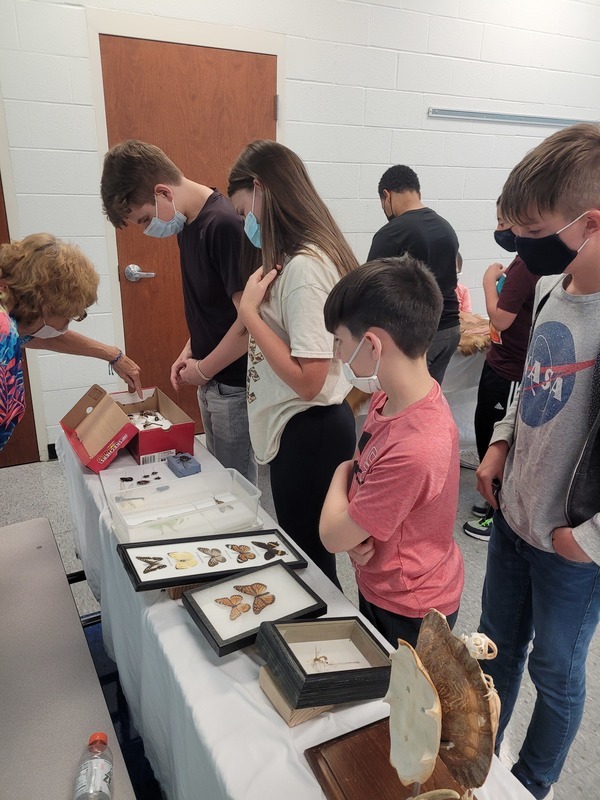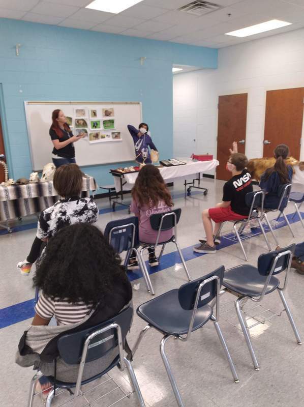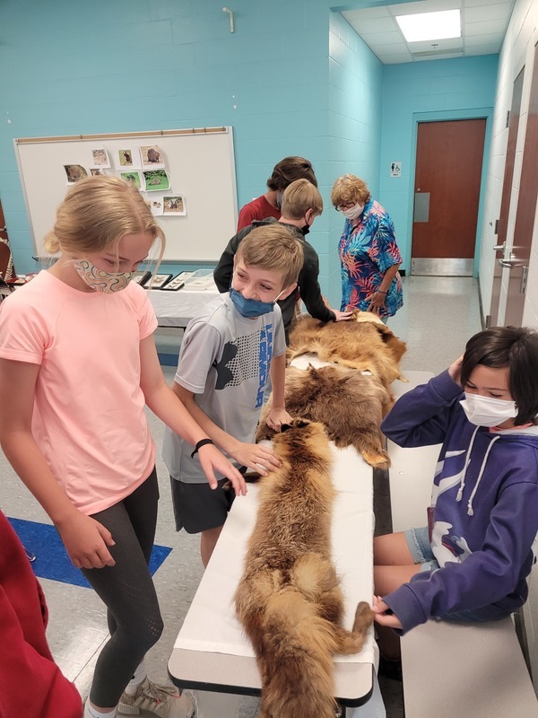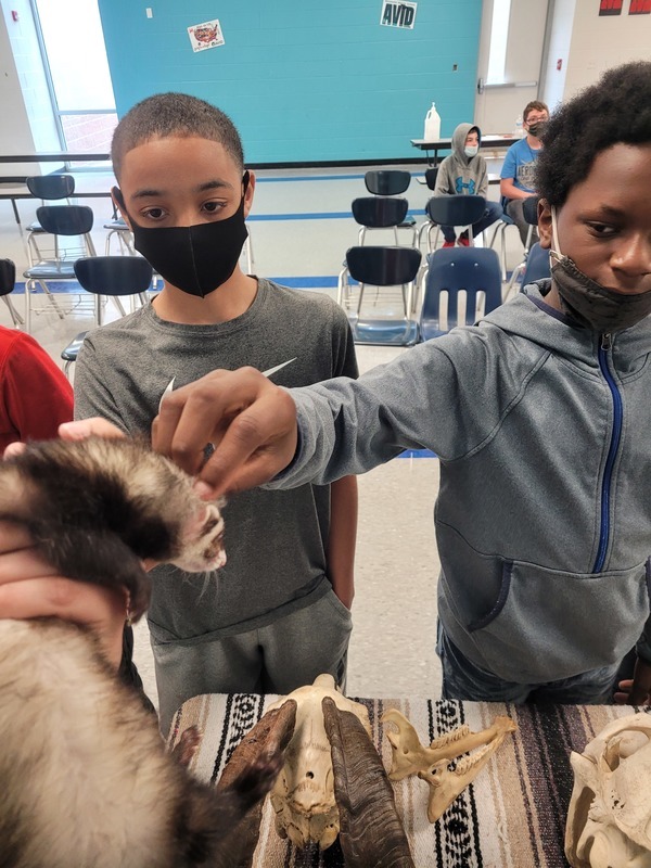 Ms. Hall showed off her skull and bug collections, along with some furs and some live animals to the students.