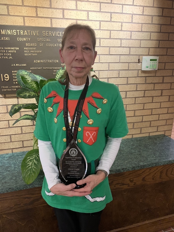 The second installment of this school year’s Inspiration in Education award was presented to Carol Crain, a custodian at Maumelle Middle School. There were 17 PCSSD different employees among the nominations for this second quarter award and Crain was nominated twice by two different colleagues at Maumelle Middle.