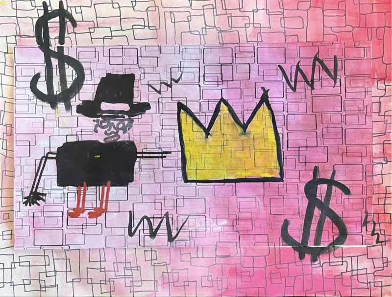 Students created art pieces which will be on display throughout the Central Arkansas Library System branches during the month of February. The works exhibit digital and applied media and art techniques combined in artwork influenced by the style of Basquiat.