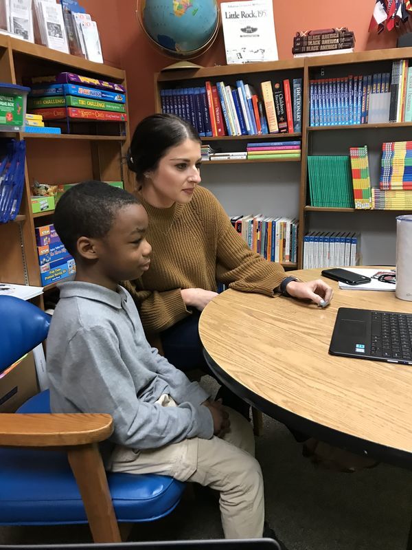 Every Friday, students have the option to save their points or "buy" something from the class store. For several weeks, 7-year-old Samuel Roberts, Jr. saved his points until he reached 200. Once a student reaches 200 points, they get to have lunch with the teacher. Mrs. Schoessel takes the student wherever he/she wants to go, her treat!